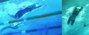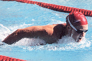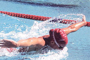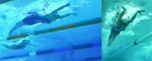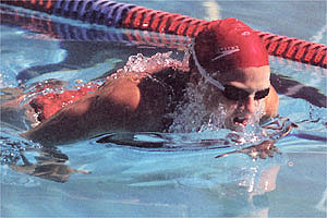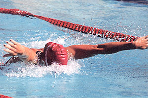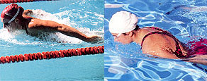 When you start learning to breathe with your body, rather than with your head, just add one breath to those short segments of four to five strokes. Then add another. You want to be able to breathe every stroke with no loss of balance. "If you breathe correctly, you should be able to breathe anytime you want," says Quick. "That will help you finish races better." Don't feel as if you have to plow through a set of 10 x 100s to prove your strength of character and toughness. Thompson does most of her butterfly training in 20-yard repeats in a diving tank. Once you get your butterfly into decent shape, keep practising with those half-laps of whole-stroke, followed by a halflap of drill. Swim only as long as you can execute a balanced, long stroke: no butterstruggle but fly! |