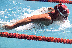 Your problem is more common than you think. Even world-class swimmers like Jenny Thompson are looking for ways to make breathing and recovery easier in the butterfly. Thanks to her constant exploration, you can improve your stroke, too. "Jenny actually is a freestyler," said Richard Quick, the head coach of the women's team at Stanford University in Palo Alto, California, Thompson's alma mater. "But her butterfly technique has freed her up to improve her freestyle." Thompson's butterfly is a "forward-balancing, forward-attacking fly, not a 'push-back' fly," says technique-coach Bill Boomer. Here are four technical aspects of this approach. |